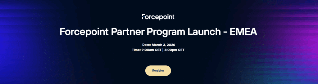 Radi by sme Vás pozvali na exkluzívny webcast, počas ktorého Forcepoint predstaví úplne nový Partner Program. Získate priame informácie o stratégii, vízii a investíciách, ktoré otvárajú nové možnosti rastu pre našich partnerov v roku 2026.